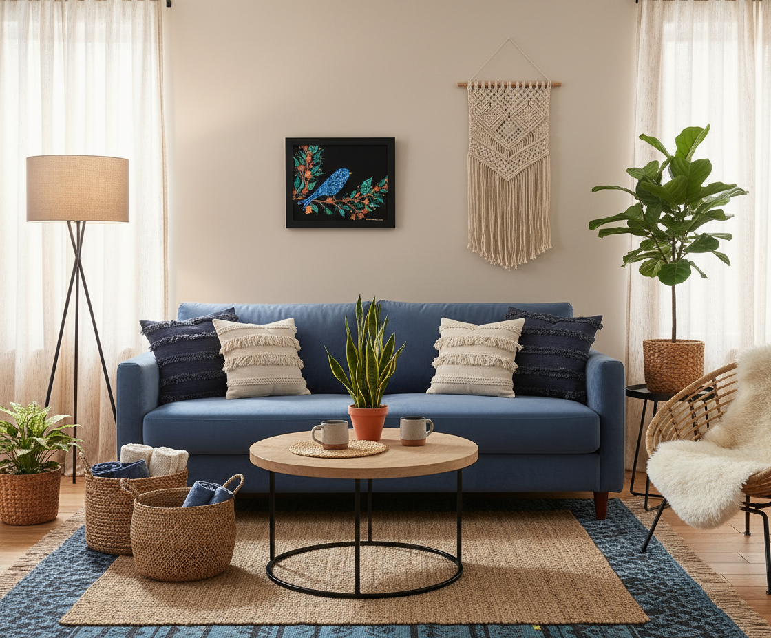 Perched in quiet joy, this patterned bluebird brings a burst of color and calm to the canvas. Nestled among whimsical leaves and blooming florals, its circular motifs and gentle gaze evoke a sense of wonder and renewal. Each brushstroke sings with playful elegance—teal leaves, peach blossoms, and a midnight backdrop that lets every hue shine.