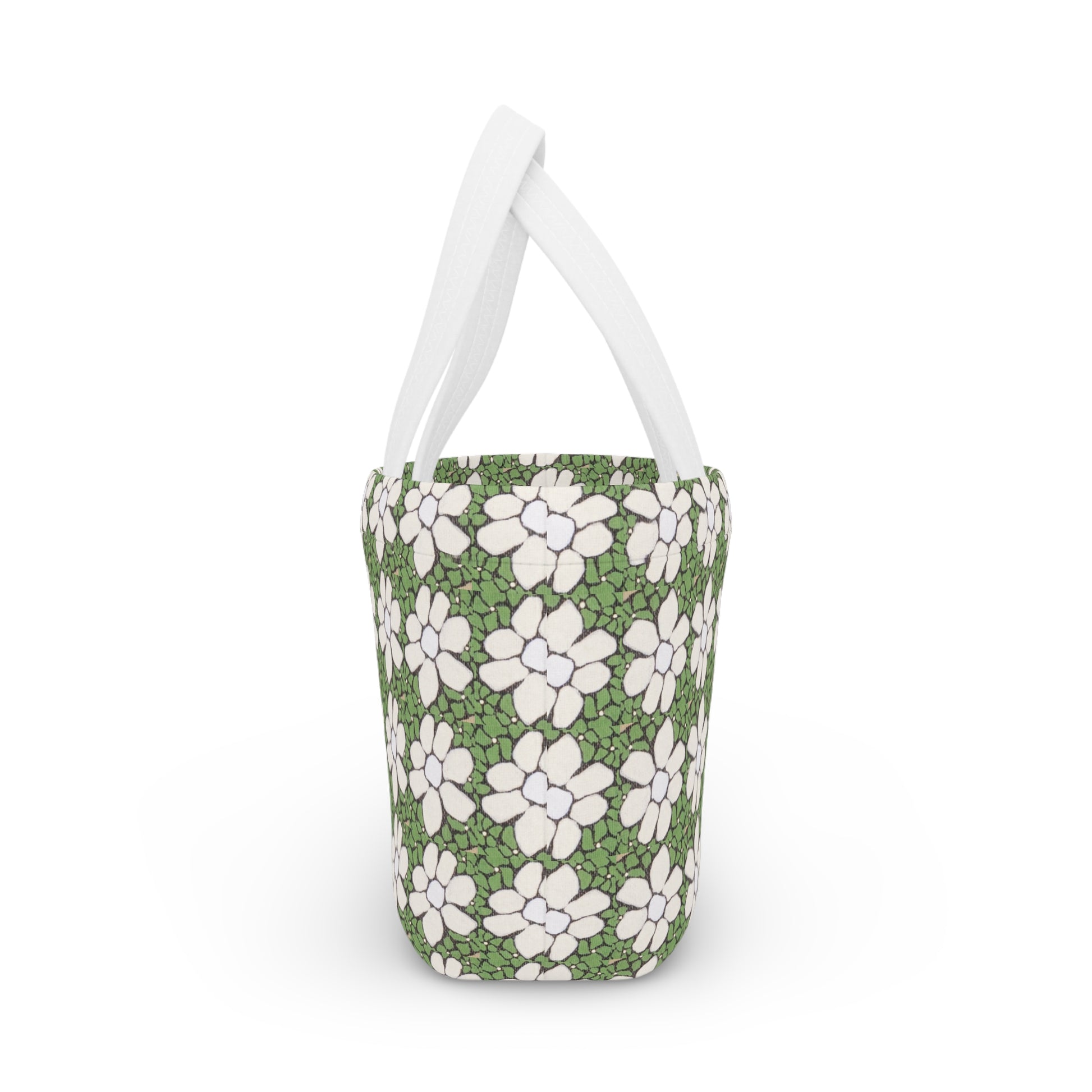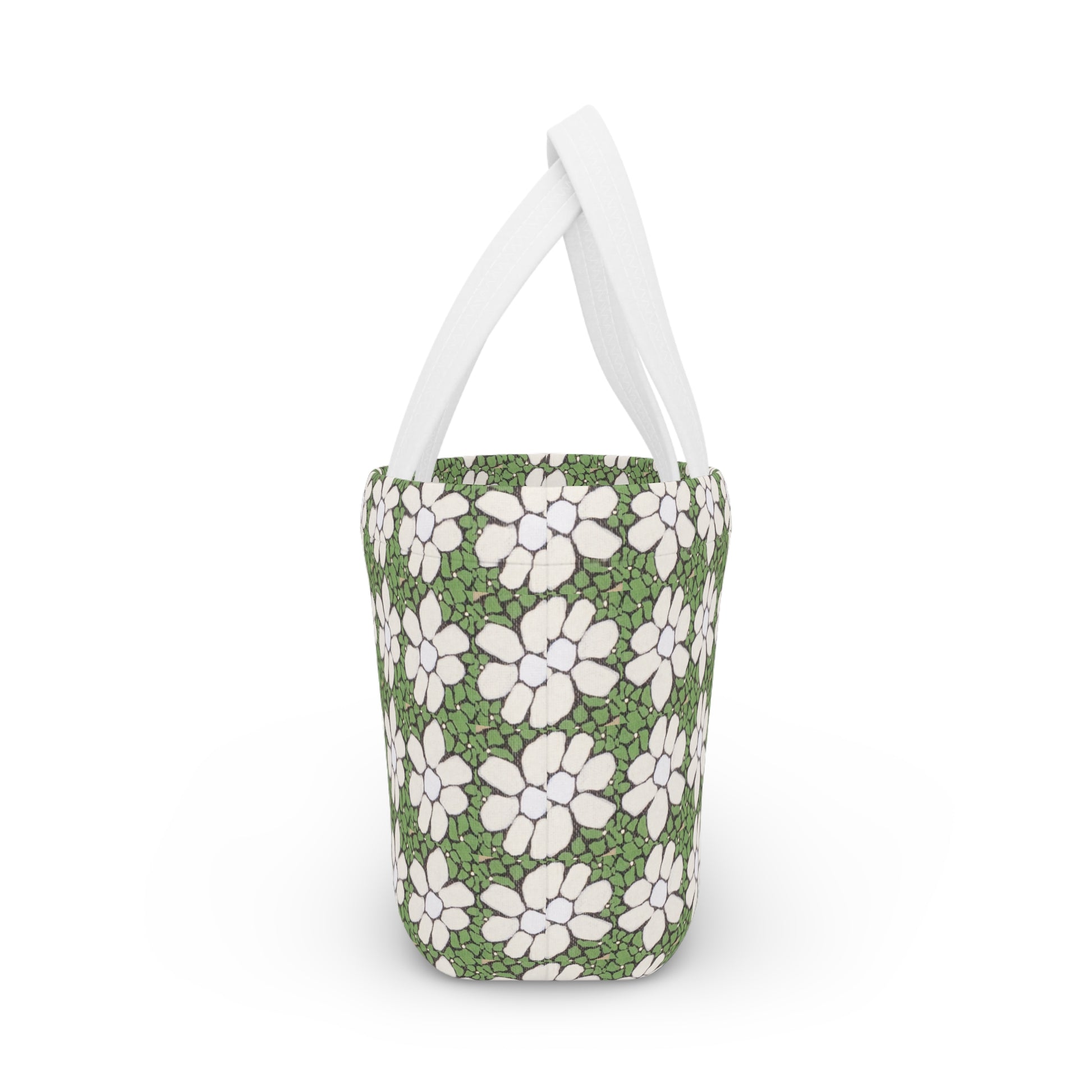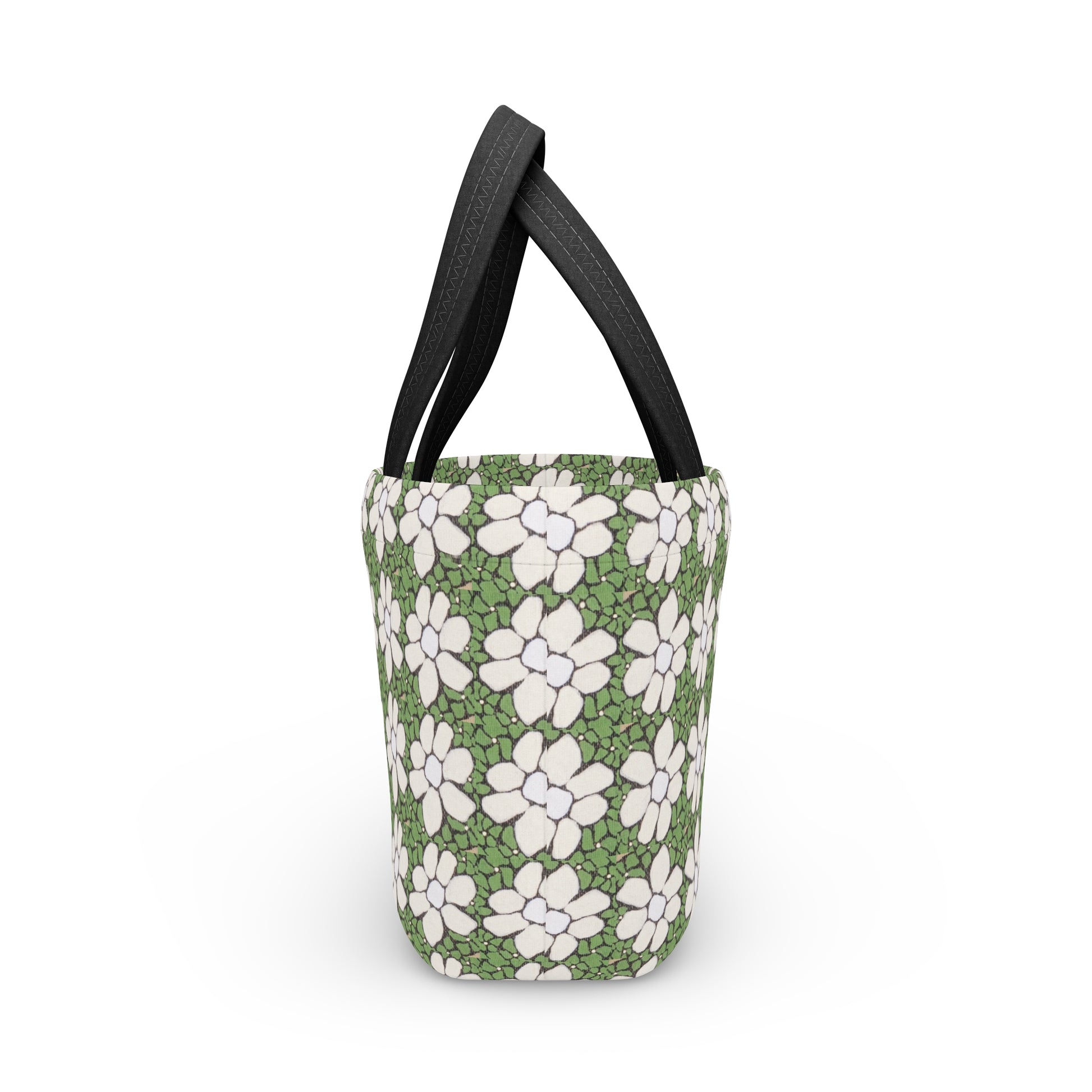 Floral Daisy Pattern Lunch Bag — Green White Retro Picnic Tote