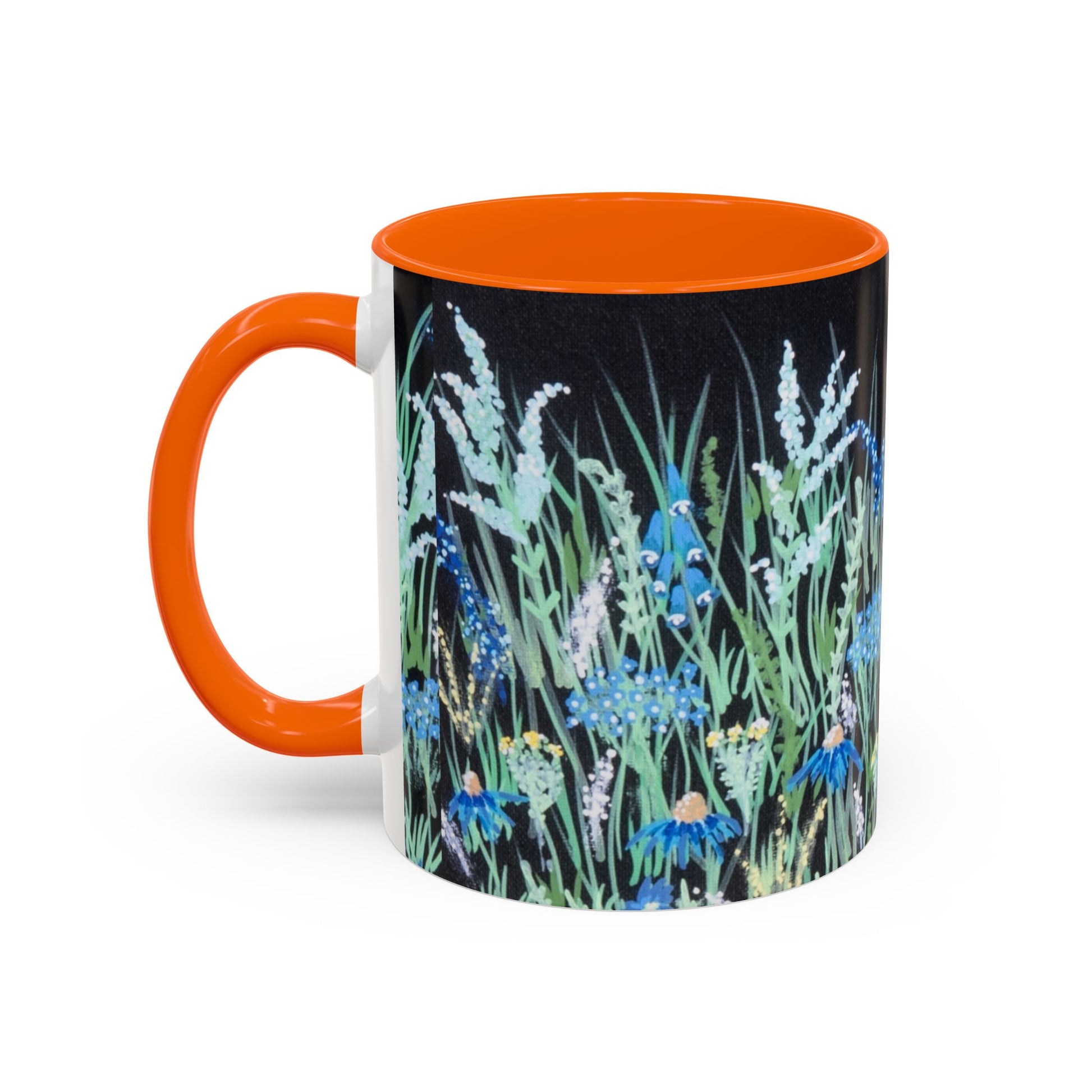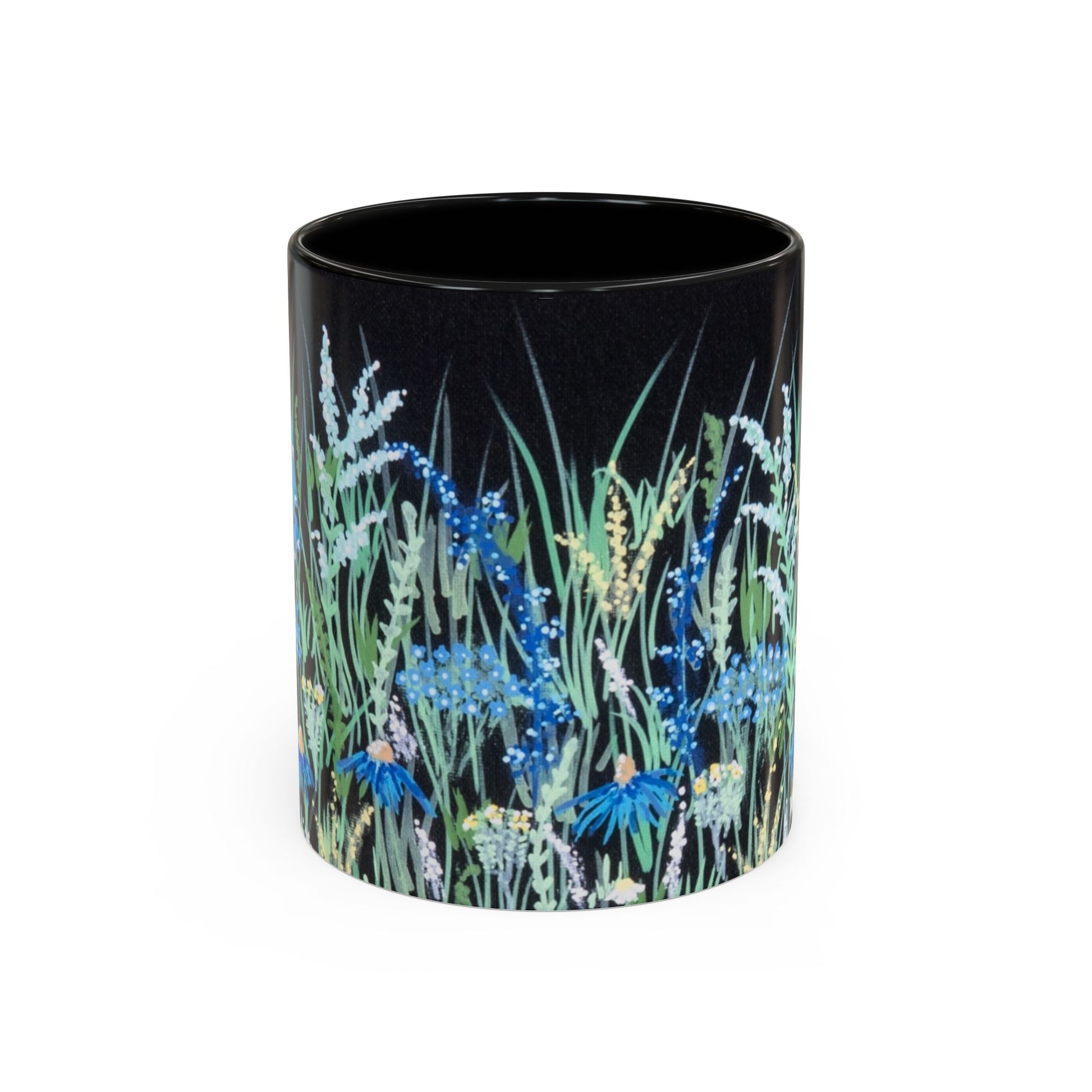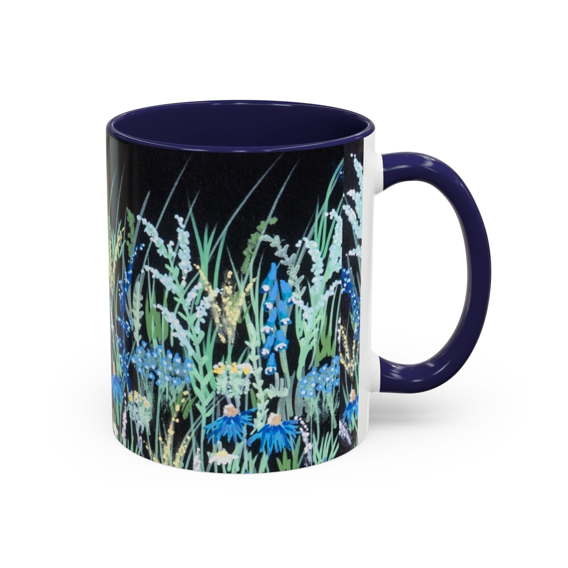 Blue hour bloom Floral Meadow Accent Coffee Mug — Blue Wildflower Garden Design (11/15oz)