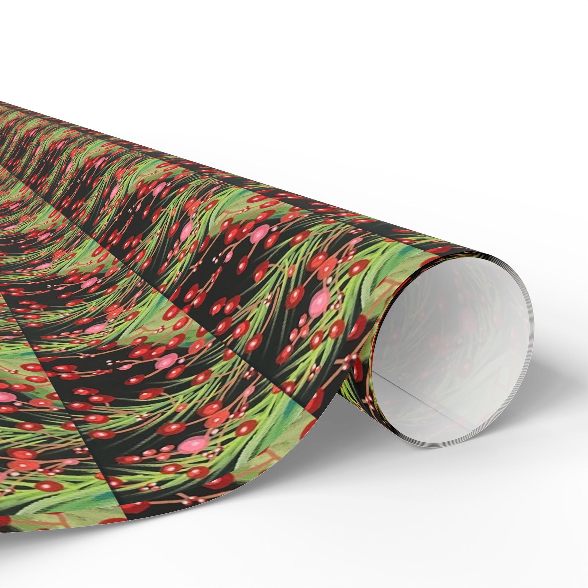 This festive wrapping paper brings a hand-painted, botanical energy to every present. A repeating pattern of lively green swirls and bright red berry-like dots creates motion and warmth across the sheet. The design reads both modern and artisanal — it looks like brushstrokes captured mid-swing — so a wrapped gift feels thoughtful before it’s even opened. Choose glossy for a vibrant, jewel-like sheen or matte for a soft, gallery-style finish. Large-format options let you wrap small boxes or long parcels without seams, and the substantial 90gsm fine art paper holds folds crisply while still feeling graceful.