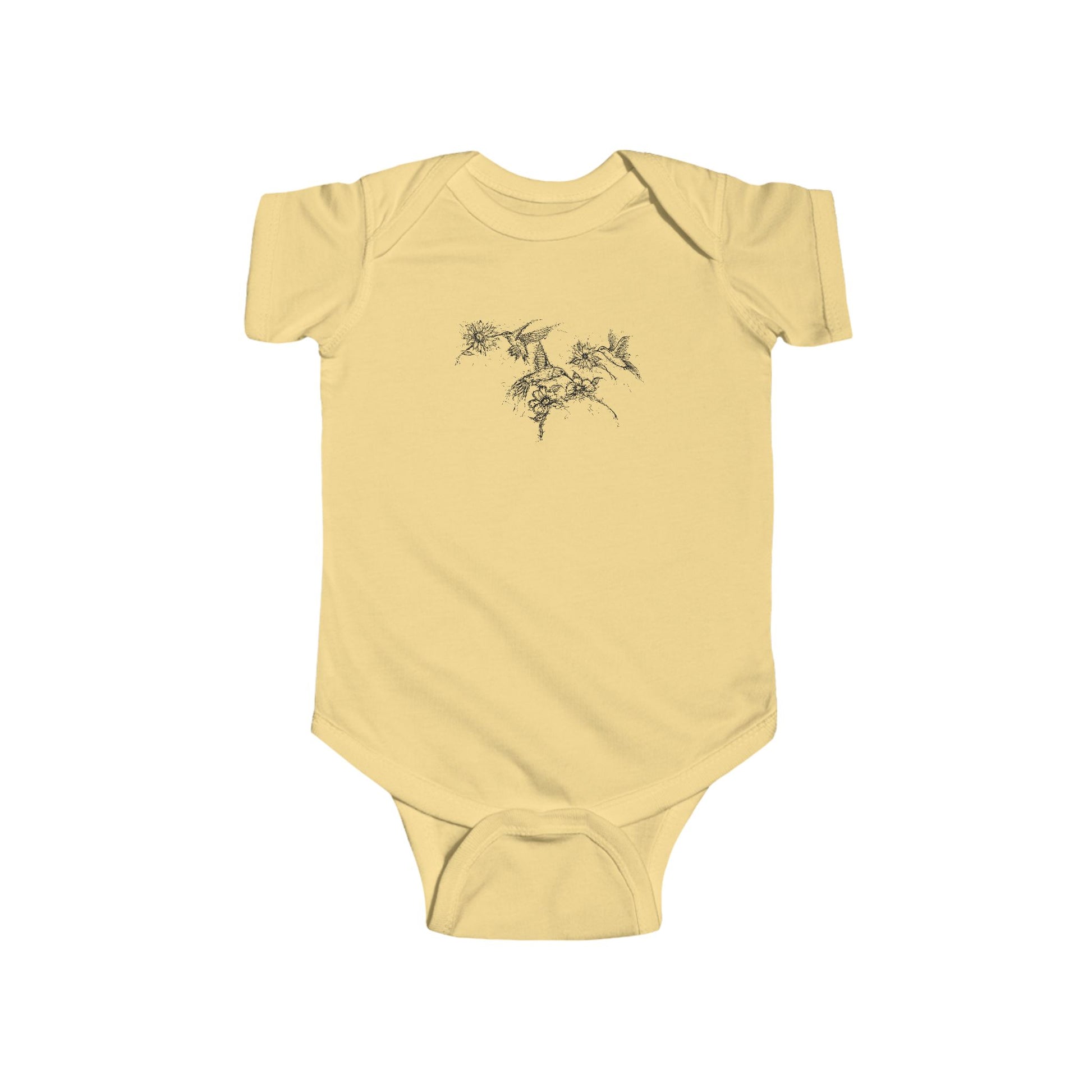 Baby clothing needs to be both durable and soft. With the infant fine jersey bodysuit, youths get just that. The fabric is 100% cotton for solid colors. For heather colors, polyester is included. There are seams along the sides of this product. All bindings are made with ribbed knitting for improved durability. There are plastic snaps at the cross closure for easy changing access.
