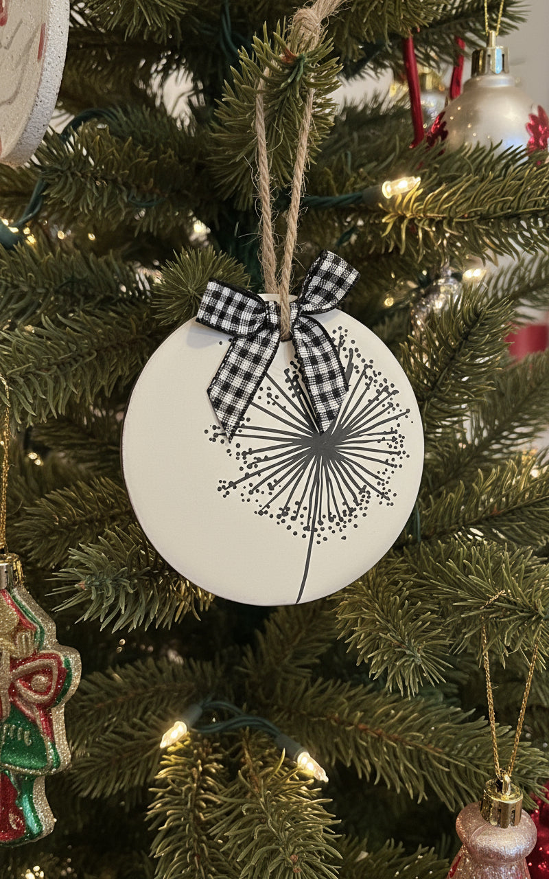 A quiet celebration of hope and wonder, Winter Wishes captures the fleeting magic of a wish carried on winter’s wind. This 2.9” x 2.9” ceramic ornament features a hand-painted dandelion seed head in elegant black ink, drifting across a soft cream background. Each seed floats outward like a whispered dream, inviting reflection and warmth.